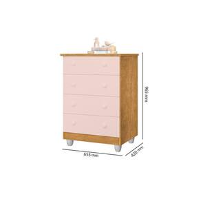 Cômoda Infantil 4 Gavetas Lara Nature/Rosa. A Cômoda Infantil Lara é a peça-chave para um quarto de bebê estratégico, com soluções inteligentes, capaz de manter a organização de todo o cômodo e ainda otimizar espaço. Ela mantém o ambiente sempre em ordem, armazena grande parte do enxoval e o melhor: por servir de fraldário, traz muita praticidade para a vida dos papais! O móvel conta com quatro gavetas espaçosas, onde você pode guardar bodies, pijama, fraldinhas e tudo o que você precisar colocar em ordem, e uma porta com repartição. Ean: 7899825816179