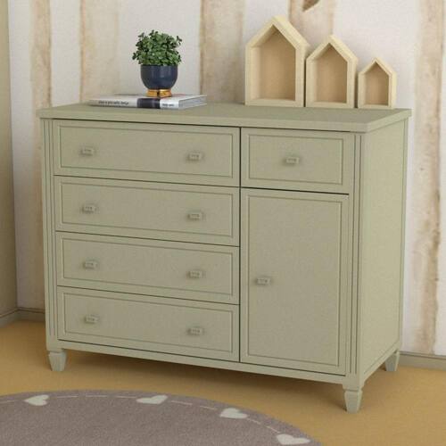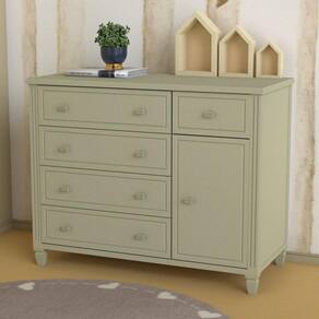 Cômoda Infantil 5 Gavetas 1 Porta Tudor Timber Verde. Inspirada na solidez e tradição das famílias reais inglesas, a Linha Tudor traz o charme do estilo clássico, mas com uma pegada simplista. É a união perfeita da elegância com a leveza. Mastro e pés em madeira maciça. Puxadores resistentes e design clássico. Marca: Timber Ean: 7908308749528