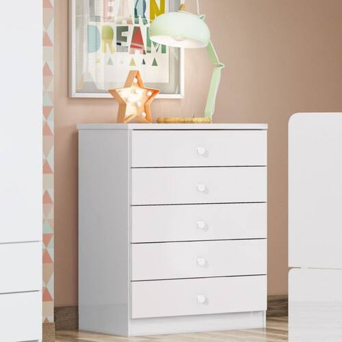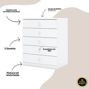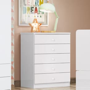 Cômoda Infantil 5 Gavetas - Bala de Menta Branco - Beleza e Funcionalidade em um só Móvel