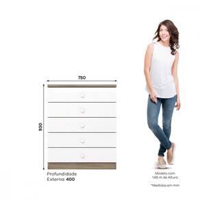 Características: Material da estrutura: MDP Acabamento: Pintura UV 5 Gavetas Gaveta suporta até 3kg Tipo de puxador: ABS Tipo de corrediça: Metálicas