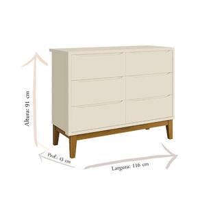 Cômoda Infantil 6 Gavetas Classic Areia Acetinado com Pés Madeira ? Reller