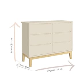 Cômoda Infantil 6 Gavetas Classic Areia Acetinado com Pés Natural – Reller