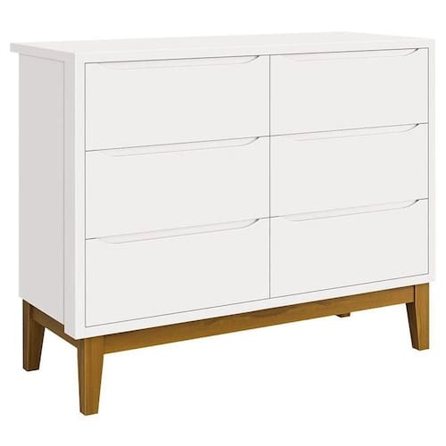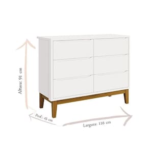 Cômoda Infantil 6 Gavetas Classic Branco Acetinado com Pés Madeira Reller