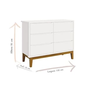 Cômoda Infantil 6 Gavetas Classic Branco Acetinado com Pés Madeira ? Reller