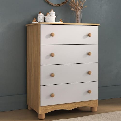 Cômoda Infantil 65cm Com 4 Gavetas Dengo Multimóveis Mp4409 Madeirado/branco Madeirado/branco Criada para acompanhar a doçura da infância, a Cômoda Infantil 65cm com 4 Gavetas Dengo Multimóveis MP4409 traz o equilíbrio perfeito entre estilo e utilidade. Suas gavetas espaçosas ajudam a manter o quarto sempre em ordem, enquanto o visual delicado transforma o ambiente em um espaço ainda mais acolhedor. Um móvel que cuida, decora e facilita. Diferenciais: - 3 anos de garantia contra defeitos de fabricação e material. - Produzida em madeira de reflorestamento (MDP 12/15mm) com acabamento acetinado (cerca de 20% de brilho): sustentabilidade e durabilidade. - 4 gavetas: amplo espaço interno para organizar roupinhas e acessórios. - Corrediças telescópicas: permitem a abertura total e o manuseio silencioso das gavetas. - Puxadores em ABS redondos e práticos. - Pés em polipropileno e rodapé usinado: estabilidade e elegância. - Sistema antitombamento: proporciona segurança para o bebê e tranquilidade aos pais.