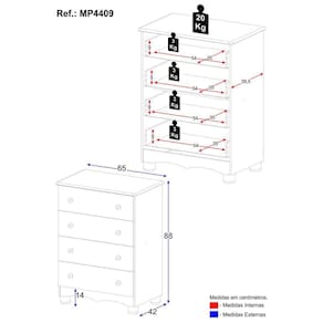 Observações Importantes: *As cores do produto podem sofrer variações de tonalidade de acordo com as configurações do seu dispositivo. *Aqui na Loja Multimóveis, você pode concluir sua compra facilmente com toda segurança. A entrega é garantida e você está em 1 lugar. *Imagens meramente ilustrativas (decoração não inclusa). *O produto será entregue desmontado e não disponibilizamos o serviço de montagem. Acabamento: FF/Pintura UV | Material: MDP | Referência do Modelo: MP4409 | Coleção: | Instruções de Cuidado: Limpar com pano seco para retirar o pó. Não utilizar produtos químicos ou abrasivos a limpeza. Não aplicar lustra móveis. | Sistema de Montagem: O produto acompanha manual de montagem juntamente com kit ferragem. O produto será entregue desmontado e não disponibilizamos o serviço de montagem. | Produto Composto por: 1 cômoda, manual de montagem e kit ferragem. | Com Gaveteiro: Sim | Corrediça: Telescópica | Material do Puxador: ABS | Quantidade de Gavetas: 4 | Quantidade de Portas: 0 | Quantidade de Prateleiras: 0 | Altura Montado: 88 | Largura Montado: 65 | Profundidade Montado: 42 | Tamanho (L x A x P): 65 x 88 x 42 | Tonalidade: Branco | Peso do Produto: 25 | Garantia do Fabricante: 3 | É Desmontável: Não | Fabricante: Multimóveis | Produto: Cômoda | Altura (cm): 88 cm | Largura (cm): 65 cm | Profundidade (cm): 42 cm | Tempo de Garantia: 3 meses | Tipo de móvel: Cômoda | Material das gavetas: MDP | Com corrediças: Sim | Com portas: Não | Material de dobradiças: N/A | Com prateleiras: Não | Com prateleiras ajustáveis: Não | Requer Montagem: Sim | Inclui manual de montagem: Sim | Inclui acessórios de montagem: Sim | Peso (kg): 25 kg | Material do corpo: MDP | Estilo: Moderno | Marca: Multimóveis | Quantidade de caixas de embalagem: 02 | Destaque 1: Produzida em MDP: maior durabilidade e resistência. | Destaque 2: Gavetas com corrediças telescópicas: abertura total e silenciosa. | Destaque 3: Puxadores redondos em ABS: práticos e delicados. | Destaque 4: Pés em polipropileno e rodapés: estabilidade e elegância. | Destaque 5: Tamanho do produto montado (L x A x P): 65 x 88 x 42 cm | Baterias são necessárias?: Não | Certificação de teste externa: N/A | Dimensões do item P x L x A: depth#value=42;depth#unit=centimeters;width#value=65;width#unit=centimeters;height#value=88;height#unit=centimeters | Is Fragile: Não | Peso do item: unit=kilograms;value=25 | Quantidade de itens: 1 | Número da peça: MP4409.697 | É resistente à umidade: Não | Com alças: Sim | Com pés: Sim | Com rodas: Não | Tipo de Garantia: Garantia do Fabricante | Montagem: Necessita Montagem | País de Origem: Brasil | Altura do Produto com Embalagem: 20 cm | Largura do Produto com Embalagem: 46 cm | Comprimento do Produto com Embalagem: 86 cm | Tipo da embalagem do vendor: Sem embalagem adicional | Peso do Produto com Embalagem: 25000 g | Cor: Madeirado/Branco Marca: Não Informado