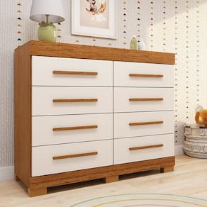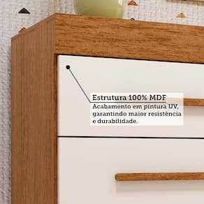 Para você que está buscando um móvel com amplo espaço interno e maior durabilidade, a Cômoda Brincare é perfeita. Com estrutura em 100% MDF, 8 gavetas muito espaçosas para organizar roupas ou outros objetos. Muito versátil, ela pode ser usada também em outros cômodos além do quarto. Suas gavetas possuem corrediças telescópicas, proporcionando deslize suave e silencioso. Aproveite esse oportunidade e adquira agora a sua. Produto Montado: Sim Acabamento da Gaveta: Pintura UV Acabamento dos Pés: Pintura Altura dos Pés: 5 cm Altura Máxima dos Pés: 5.0000 Ambiente Principal: Quarto Infantil codigo_ean: 7900288192233 Complexidade da Montagem: Média: pode ser montado por mais de uma pessoa e/ou necessite de maior conhecimento para montagem Cor: Cinamomo/Off White Cor do Produto: Cinamomo/Off White Cor Flex: Não Cor Interna: Linho Escala de Brilho: Semi-Brilho Escala de Brilho da Gaveta: Semi-Brilho Gaveta com Chave: Não Informações Complementares: Estrutura e frente de gaveta em MDF 12mm, tampo em MDF 15mm e fundo HDF 2,5mm. Peso máximo suportado de 46,5kg devem ser distribuídos de forma adequada e equilibrada. Itens Inclusos: 1 Cômoda, Kit Ferragens e Manual de Montagem Linha ou Coleção: Brincare Manual de Montagem e Instalação: https://product-hub-prd.madeiramadeira.com.br/912403729/documents/921d713c-c654-4769-ad4d-9c99efee4710305667545331751991574538.pdf Marca: Espresso Móveis Material da Gaveta: MDF Material do Fundo: HDF Material do Puxador da Gaveta: MDF Material dos Pés: ABS Material Principal: MDF modular: Não Montagem Flex: Não Necessita Montagem: Sim Origem do Produto: Nacional Pés Reguláveis: Não Peso: 46,5 kg Peso Máximo por Gaveta: 5 kg Possui Espelho: Não Possui Nichos: Não Possui Pés: 06 Possui Portas: Não Possui Prateleiras: Não Possui Rodízio: Não Quantidade de Gavetas: 08 Gavetas Recomendações de Uso, Manutenção e Limpeza: Para limpar não use nenhum tipo de produto, tais como sabão, esponja de aço, álcool e lustra-móveis. Use somente uma flanela seca. Não molhe nem exponha o móvel à umidade ou a luz solar diretamente ou outra forma de calor. Não encoste o móvel na parede. Não o arreste. Se precisar mudar o móvel de lugar, esvazie por completo o móvel, não o arraste, com ajuda de outras pessoas suspenda o móvel de forma segura e o posicione no lugar desejado. Sapatas Niveladoras: Não Sistema de Montagem: Parafusos, Minifix e Cavilhas Suporta Até (kg): 46,5 kg Tipo de Cômoda: Infantil Tipo de Corrediça da Gaveta: Metálica Telescópica Tipo de Puxador da Gaveta: Externo