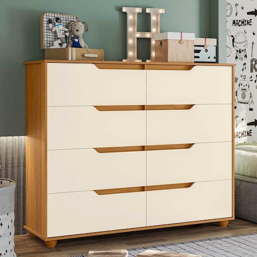 A Cômoda Circus é moderna e funcional. Dispõe de 8 gavetas para manter suas roupas e objetos pessoais mais organizados. Possui reforço estrutural e os puxadores são em formato cava. Seu design garantirá mais beleza ao seu ambiente. Acabamento da Gaveta: Pintura UV Acabamento dos Pés: Verniz Altura dos Pés: 5 Ambiente Principal: Quarto Infantil Complexidade da Montagem: Alta: deve ser montado por um montador especializado Cor: Carvalho Grife/Off White Cor do Produto: Carvalho Grife/Off White Cor Interna: Carvalho Grife Escala de Brilho: Semi-Brilho Escala de Brilho da Gaveta: Semi-Brilho Gaveta com Chave: Não Itens Inclusos: 1 Cômoda, Kit Ferragens e Manual de Montagem Linha ou Coleção: Albatroz Manual de Montagem e Instalação: https://cdn2.madeiramadeira.com.br/atributo/albatroz-moveis/1556559-esquema-182-cOmoda-circus.pdf Material da Gaveta: MDP Material do Fundo: HDF Material dos Pés: ABS Material Principal: MDP Montagem Flex: Vistas das gavetas flex Necessita Montagem: Sim Origem do Produto: Nacional Pés Reguláveis: Não Peso: 61 Peso Máximo por Gaveta: 5 Possui Espelho: Não Possui Nichos: Não Possui Pés: 05 Possui Portas: Não Possui Prateleiras: Não Quantidade de Gavetas: 08 Gavetas Recomendações de Uso, Manutenção e Limpeza: Limpar com flanela ou pano macio seco, não utilizar produtos abrasivos, desengordurantes, álcool ou solvente. Não expor o produto diretamente à luz solar e à umidade. Sapatas Niveladoras: Não Sistema de Montagem: Parafusos, cavilhas e minifix Suporta Até (kg): 50 Tipo de Corrediça da Gaveta: Metálica Telescópica Tipo de Puxador da Gaveta: Embutido Ean: 7909903441008