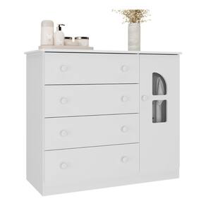 Diferenciais: - 3 anos de garantia contra defeitos de fabricação e material. - Produzida em madeira de reflorestamento (MDP 12/15mm) com acabamento acetinado (cerca de 20% de brilho): sustentabilidade e durabilidade. - 1 porta e 4 gavetas (frontais em MDF): amplo espaço interno para organizar roupinhas e acessórios. - Detalhes de vidro incolor temperado 3mm na porta: toque charmoso que permite visualizar o interior do móvel. - Corrediças telescópicas: permitem a abertura total e o manuseio silencioso das gavetas. - Cabideiro em alumínio: acomoda as roupas para que não amassem. - Puxadores em ABS redondos e práticos. - Rodapé: visual harmonioso e facilidade na limpeza do ambiente. - Sistema antitombamento: proporciona segurança para o bebê e tranquilidade aos pais.