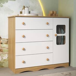 - 1 porta e 4 gavetas (frontais em MDF): amplo espaço interno para organizar roupinhas e acessórios.