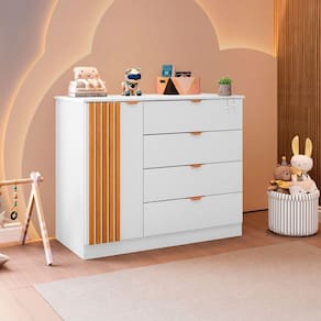 Adicione um toque de sofisticação ao ambiente do seu bebê com a Cômoda Infantil Ayla 1 porta 4 Gavetas 100% MDF Phoenix Baby. Com seu ripamento em MDF, esta cômoda não só oferece funcionalidade, mas também um charme especial, elevando a estética do espaço. Construída com materiais de alta qualidade, proporciona durabilidade e segurança para armazenar as roupinhas e acessórios do seu pequeno tesouro. A pintura UV semibrilho confere um acabamento impecável, enquanto as corrediças telescópicas garantem suavidade e praticidade no uso diário. Redefina o estilo do quarto do seu bebê com a Cômoda Infantil Ayla, onde cada detalhe é pensado para encantar. Acabamento da Gaveta: Pintura UV Acabamento da Porta: Pintura UV Acabamento da Prateleira: Pintura UV Ambiente Principal: Quarto Complexidade da Montagem: Média: pode ser montado por mais de uma pessoa e/ou necessite de maior conhecimento para montagem Cor: Branco Cor do Produto: Branco Cor Interna: Branco Escala de Brilho: Semi-Brilho Escala de Brilho da Gaveta: Semi-Brilho Escala de Brilho da Porta: Semi-Brilho Escala de Brilho da Prateleira: Semi-Brilho Gaveta com Chave: Não Itens Inclusos: 1 Cômoda, Kit Ferragem e Manual de Montagem Linha ou Coleção: Ayla Manual de Montagem e Instalação: https://product-hub-prd.madeiramadeira.com.br/906155/documents/dd6c7818-2b17-461e-8b86-18635565c8401931127cOmodaayla.pdf Material da Gaveta: MDF Material da Porta: MDF Material da Prateleira: MDF Material do Fundo: HDF Material do Puxador da Gaveta: Alumínio Material do Puxador da Porta: MDF Material Principal: MDF modular: Não Necessita Montagem: Sim Origem do Produto: Nacional Peso: 43 Peso Máximo por Gaveta: 5 Peso Máximo por Prateleira: 5 Possui Espelho: Não Possui Nichos: Não Possui Pés: Não Possui Portas: Sim Possui Prateleiras: Sim Quantidade de Gavetas: 04 Gavetas Quantidade de Prateleiras: 01 Prateleira Recomendações de Uso, Manutenção e Limpeza: Para Limpeza Utilizar Pano Seco Sapatas Niveladoras: Sim Sistema de Montagem: Minifix, Parafusos e Cavilhas Suporta Até (kg): 40 Tipo de Corrediça da Gaveta: Metálica Telescópica Tipo de Dobradiça/Corrediça da Porta: Metálica Tipo de Porta: Bater Tipo de Puxador da Gaveta: Externo Tipo de Puxador da Porta: Externo