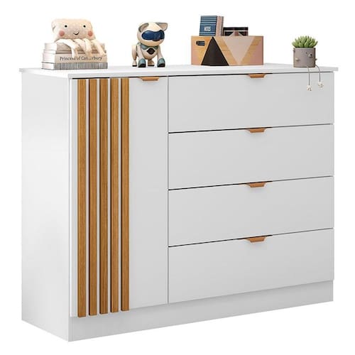 Procurando móveis para complementar o quartinho do seu bebê? Apresentamos uma ótima opção que irá auxiliar na organização das roupinhas, sapatinhos e acessórios do bebê. A Cômoda Infantil Ayla foi desenvolvida pela Phoenix com estrutura em MDF de alto padrão de qualidade, amplo espaço interno e design encantador com detalhe ripado para deixar o ambiente super moderno, não perca mais tempo e aproveite!