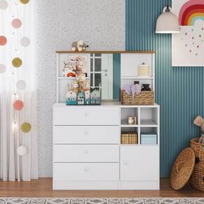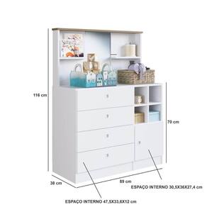 A cômoda CD095 possui estrutura em MDP 15mm e acabamento FF fosco possui 4 gavetas com puxadores embutidos em plástico, corrediças metálicas e que suportam 5kgs cada, 4 prateleiras que suportam 5kgs cada e 1 porta de bater com dobradiça metálica e puxador embutido em plástico. Costas 3mm. Acompanha espelho com tamanho de 45x30cm e espessura 3mm. Produto suporta até 57kgs. Necessita fixação na parede e parafusos estão inclusos. Conteúdo da embalagem: móvel, ferragens e manual de montagem. A fixação das peças e/ou acessórios é feita por parafusos, cavilhas e minifix. Para uma limpeza mais efetiva, utilizar apenas pano macio umedecido e sabão neutro. Não utilizar produtos abrasivos. Garantia de 03 meses contra defeitos de fabricação. Medidas do produto (AxLxP): 116x89x38cm. Peso do produto: 34,3kgs.