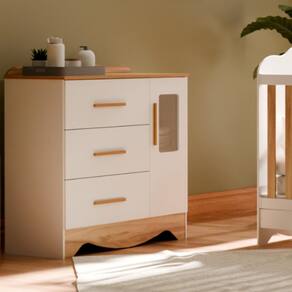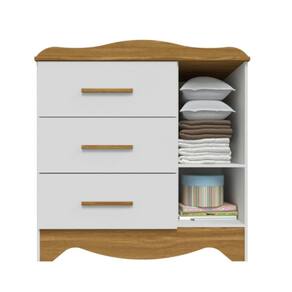 A Cômoda Infantil Clara Peroba Cor Branco comAmêndoa, referência P3449.87, com puxadores em MDF revestido, corrediças telescópicas, portas com PETG cristal,2 opções de rodapé, linho interno e sistema antitombamento.Com sua combinação de cores branco com amêndoa, se adapta perfeitamente a qualquer decoração, trazendo um toque de sofisticação ao ambiente. Ideal para a fase inicial da vida, este móvel é recomendado para bebês de 0 a 24 meses. Foi produzida em100% MDF, a Cômoda é sinônimo de qualidade e resistência. O material é fácil de limpar e mantém a beleza por muito mais tempo. Além disso, a garantia do fabricante assegura que você está fazendo um investimento seguro para o quarto do seu bebê.A montagem é simples e prática, permitindo que você monte a cômoda rapidamente e comece a usá-la sem complicações.Seu design unissex permite que ela se encaixe em qualquer ambiente.