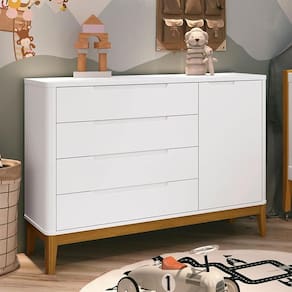 Cômoda Infantil Classic Boom Branco com Pés Amadeirado - Reller