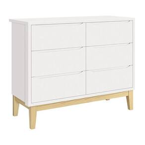 Cômoda Infantil Classic 6 Gavetas Branco Fosco Com Pés Madeira Natural - Reller Móveis Branco Fosco