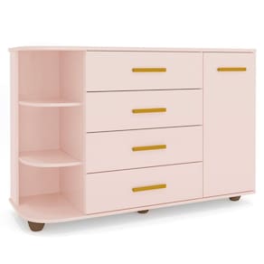 MDFA Cômoda Infantil com Cantoneira e 4 Gavetas 100% MDF New Lorena Rosê, da Phoenix Baby é a escolha ideal para quem busca funcionalidade e estilo no Quarto Do Bebê. Com sua estrutura 100% MDF e acabamento em pintura atóxica UV de alto brilho, a Cômoda Infantil não só garante um visual encantador, mas também promete durabilidade e . As gavetas com corrediças telescópicas oferecem um manuseio suave e silencioso, perfeito para não atrapalhar o sono do bebê, enquanto a cantoneira adiciona um toque de elegância e aproveitamento de espaço com nichos, de forma segura sem quinas já pensando no seu bebê. A Cômoda com Porta acompanha 1 cabideiro em alumínio e 1 prateleira interna, de uso opcional, é um bônus para organizar as roupinhas com facilidade. Se queria deixar o quarto mais moderno e funcional acabou de encontrar o móvel certo!Adicione em seu carrinho de comprar e garanta a sua! ESPECIFICAÇÕES Dimensões do ProdutoLargura: 135 89 cm.Profundidade: 45 52 Medidas Porta (Largura x Altura): 28 x 81 cm.Gavetas (Largura x Altura): 71,5 x 19 cm.Características do ProdutoMaterial da Estrutura: 100% Suportado: 50 kg distribuídos.Acabamento: Pintura Atóxica de Brilho: Acetinado.Quantidade de Portas: 1 de Dobradiças: Metá Cabideiro: Sim, uso opcional.Material do Cabideiro: Alumínio.Quantidade de Gavetas: 4 de Corrediças: Telescó de Puxador: PVC Prateleiras: Sim.Quantidade de Prateleiras: 3 Nichos: Sim.Quantidade de Nichos: 3 Pés: de Pés: PVC.Diferenciais: - Design moderno.- Amplo espaço interno.- Cantoneira com nichos.- Prateleira interna e cabideiro de uso opcional.Sistema de Montagem: Minifix / Cavilhas / de Montagem: Sim.Complexidade da Montagem: Média.Volumes: 2 Volumes.Garantia do Fabricante: 90 dias contra de fabricação.Montagem: Recomendamos que seja feita por um .Recomendação de Limpeza: Pano levemente úmido e detergente neutro.Observações importantes - Produto para uso residencial em ambiente interno, não devendo ficar exposto diretamente ao sol, calor e umidades excessivas.- Pode haver alguma diferença de tonalidade entre a imagem e o produto real, por conta do tratamento de imagens e a calibração de cores do seu monitor.- As imagens são meramente ilustrativas, não acompanham objetos de decoração e eletrônicos.- Ao receber a mercadoria, o cliente deve verificar as condições da embalagem, caso haja alguma não assine o de .- Montagem, desmontagem e outras instalações serão de responsabilidade do cliente. Não nos responsabilizamos, no ato da , por subir escadas/elevadores ou pelo por guincho em apartamentos. Eventuais despesas são de responsabilidade do comprador.- Confira as dimensões do produto e certifique-se de que passará normalmente por supostos elevadores, portas, escadas e/ou corredores de sua residência.
