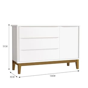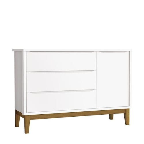 Cômoda Infantil Com Porta E 3 Gavetas Classic Branco Fosco Com Pés Amadeirado - Reller Móveis Branco Fosco