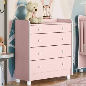 A Cômoda 4 Gavetas possui corrediças metálicas com um deslizar suave, e conta ainda com trocador, proporcionando praticidade e conforto durante os cuidados diários com o bebê.