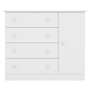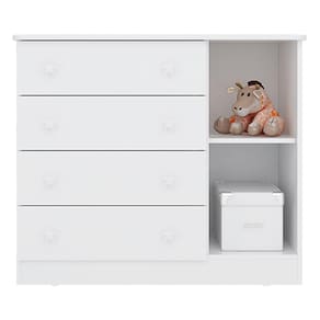 O(a) Cômoda Infantil Doce Sonho 1 Porta 4 Gavetas Branco - Qmovi é produzido em MDP na escala de brilho Brilho, e possui um grau de dificuldade de montagem: Médio.