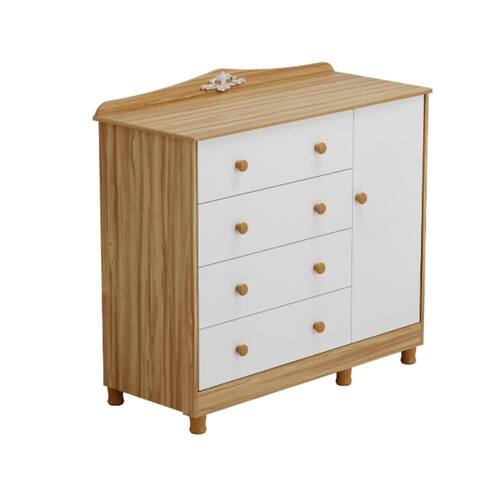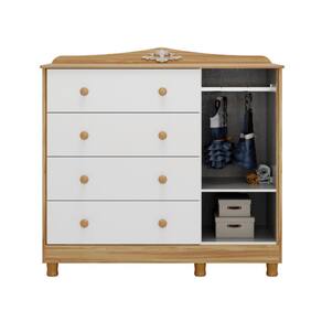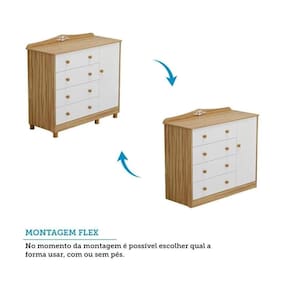 A Cômoda Infantil Elô Peroba Cor Branco com Amendoa referência 4464.87, com puxadores em ABS, cabideiro metálico, tampo com bordas laqueadas, molduras laterais em MDF revestido, pés reguláveis em ABS inclusos, corrediças telescópicas, linho interno e sistema antitombamento. Acombinação perfeita de estilo, praticidade e segurança, ideal para armazenar roupas, brinquedos e outros itens essenciais.O acabamento em branco com amendoa traz leveza e luminosidade ao ambiente, enquanto suas linhas retas e suaves garantem um toque contemporâneo. Com 4 gavetas e 1 porta, este móvel oferece amplo espaço para organizar itens do dia a dia, tornando a rotina mais prática.Fabricada em100% MDF, a cômoda é uma escolha segura para o quarto das crianças. O material é livre de substâncias tóxicas, garantindo um ambiente saudável. Além disso, a resistência do MDF proporciona durabilidade, fazendo com que a cômoda acompanhe o crescimento do seu filho por muitos anos.As gavetas são ideais para armazenar roupas, enquanto o compartimento com porta pode ser utilizado para guardar brinquedos ou outros itens maiores.
