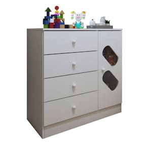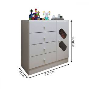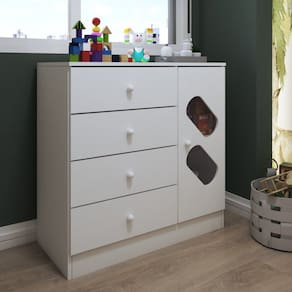 O(a) Cômoda Infantil 1 Porta 4 Gavetas Branco - Panorama Móveis é produzido em MDF e MDP na escala de brilho Fosco, e possui um grau de dificuldade de montagem: Médio.