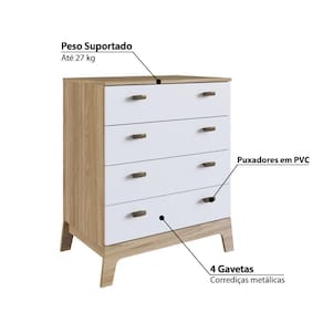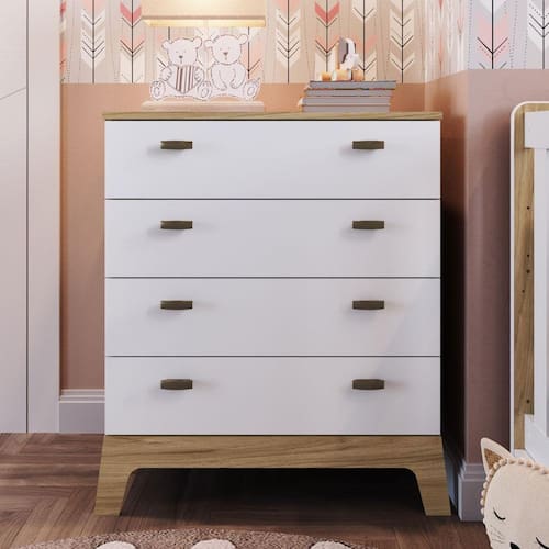 Cômoda Infantil Favo de Mel com 4 Gavetas - Natural/Branco