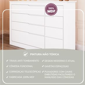 100% MDFA Cômoda com Fraldário é a escolha ideal para quem busca praticidade e organização no quarto do bebê. Com amplo espaço interno e design moderno, ela facilita a rotina diária e oferece conforto no momento da troca.