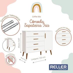 Cômoda Infantil Isis 1 Porta e 4 Gavetas - Reller Móveis A Cômoda Infantil Isis 1 Porta e 4 Gavetas, possui design moderno um amplo espaço nas gavetas para guardar as roupinhas do bebê dobradas. Produzida 100% MDF, garantindo mais durabilidade e resistência ao produto, as gavetas e a porta possuem puxadores em madeira ideal para mais conforto, praticidade e beleza.