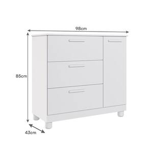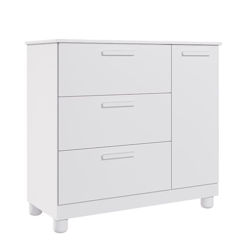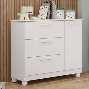 Cômoda Infantil Jujuba 1 Porta E 3 Gavetas Branco - Permóbili Baby Branco Cômoda Infantil Jujuba 1 Porta e 3 Gavetas - Permóbili Baby Encante o quarto do seu pequeno com a Cômoda Infantil Jujuba. Possui uma estrutura em MDF e pintura UV que garantem durabilidade e charme. Com uma porta e três gavetas espaçosas com corrediças telescópicas, organização é a palavra-chave. Os puxadores e pés em ABS são detalhes que agregam ainda mais delicadeza ao ambiente. Com capacidade para até 3kg em cada gaveta, é perfeita para guardar roupas, brinquedos e muito mais. ESPECIFICAÇÕES: - Estrutura em MDF - Fundo em HDF 2,5mm - Pintura UV - 1 Porta - Dobradiças metálicas - 3 Gavetas - Corrediças telescópicas - Puxadores em ABS - Pés em ABS - Suporta até 3Kg em cada gaveta