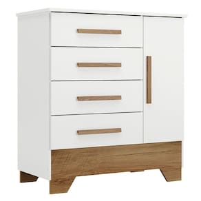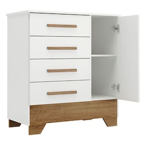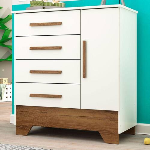 O(a) Cômoda Infantil Kids 1 Porta 4 Gavetas Branco/Nature - Loja é produzido em MDF e MDP na escala de brilho Fosco, e possui um grau de dificuldade de montagem: Médio.