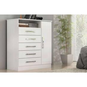 Cômoda de Quarto Madri c/ 1 Porta 1 Nicho e 5 Gavetas Branco - ACP