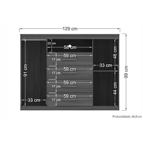 Dimensões(Cm): Comnto(Profundidade): 46,8cm x Largura: 129cm x Altura: 99cm