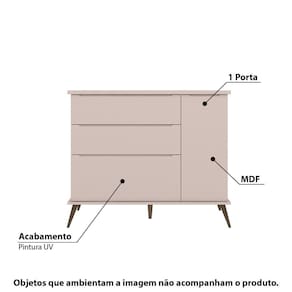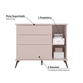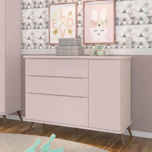A Cômoda Infantil Melinda foi inspirada na decoração clássica, no intuito de trazer aconchego e elegância ao quarto. Uma peça capaz de se adequar com o tradicional ao contemporâneo, sempre com estilo. Sua capacidade interna é dos sonhos, com muito espaço para você guardar todas as roupinhas e objetos de forma organizada. Com 3 gavetas e 1 porta. Um móvel para trazer beleza e aconchego ao quarto das crianças.