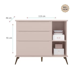 CaracterísticasEstrutura em MDFPintura com acabamento acetinado01 Porta articuladaDobradiças metálicas03 Gavetas externasCorrediças telescópicasCabideiros em alumínioPuxadores embutidosPrateleiras com amplo espaço internoPés em madeira de 15cmOBJETOS DECORATIVOS NÃO ACOMPANHAM O PRODUTO.Limpar o produto utilizando apenas pano umedecido com água, nunca utilizar produtos abrasivos ou esponjas de aço. Acompanha manual e todos os acessórios para montagem. Recomendamos que a montagem seja feita por um profissional qualificado. Garantia de 03 meses para eventuais defeitos de fabricação.Dimensões CômodaAltura 91 cmLargura 113 cmProfundidade 46 cmItens Inclusos01 Cômoda.Peso Total: 60 Kg02 volumesATENÇÃO, OBSERVAÇÕES IMPORTANTES.As imagens são meramente ilustrativas, não serão enviados objetos de decoração, eletrônicos e demais itens que não estejam especificados nos itens inclusos. É indispensável que seja feita a conferência do produto no ato da entrega e caso haja alguma divergência, seja feito o contato imediato com a loja e notificação no canhoto. Constatando defeito no ato da entrega o produto não deverá ser montado até tratativa com a loja. Não será efetuada a troca do produto após a montagem ter sido efetuada. A montagem é de total responsabilidade do cliente e defeitos na montagem serão tratadas como assistências. Os processos de pendências serão tratados mediante a fotos para analise e conferência da informação. As cores do produto podem variar de acordo com o seu monitor, a iluminação do ambiente em que você está e até mesmo a sua percepção visual. Não nos responsabilizamos, no ato da entrega, por subir escadas e elevadores. Eventuais despesas são de responsabilidade do cliente. Dúvidas serão tratadas via protocolo.