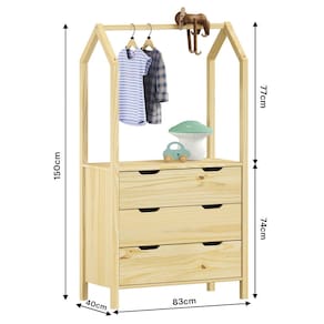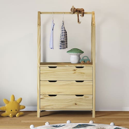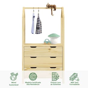 Características do Produto: Possui Prateleiras: Não Possui Arara: Sim Quantidade Gavetas: 3 Estilo: Montessoriano Ambiente Principal: Quarto Infantil