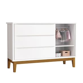 Cômoda Infantil New Classic Branco com Pés Madeira – Reller