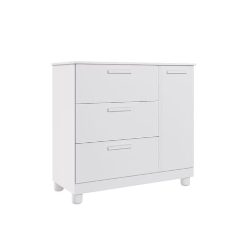 Produto em MDF, acabamento em pintura UV, e brilho semi- fosco, corrediças metálicas, puxadores e pés em ABS.