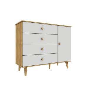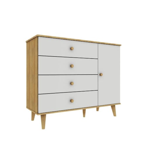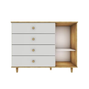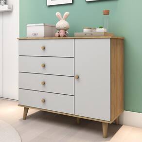 Um móvel leve e delicado em seu desenho, mas que oferece resistência e estabilidade em sua estrutura. No estilo Retrô, a cômoda fraldário é fabricada em MDF e ainda conta com um sistema de anti-tombamento e corrediça telescópica nas gavetas.