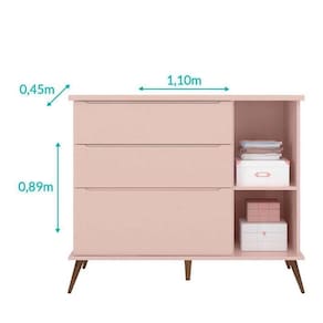 A cômoda infantil para quarto do bebê modelo retro com qualidade, lindo design e bom preço você encontra aqui, apresentamos mais uma linda opção Cômoda Infantil Retro Alice Rosa Acetinado com pés amadeirados, com amplo espaço você vai deixar todas as roupas e acessórios do seu bebê organizados com total conforto e comodidade confira!