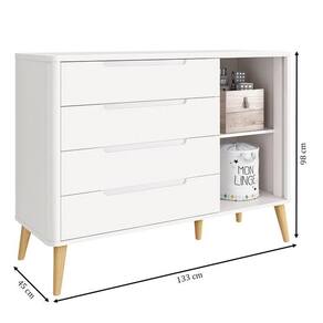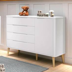 Cômoda Infantil Retrô Boom Branco com Pés Madeira Natural - Reller