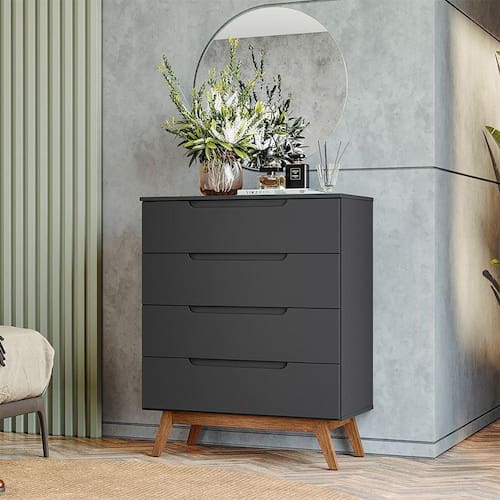 Cômoda Infantil Retrô Com 4 Gavetas Alpi - Preto Acetinado - Cor: Preto