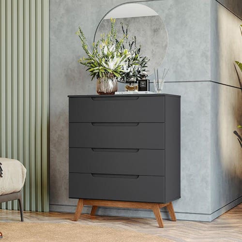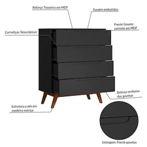 A Cômoda Retrô Alpi possui um design com charme e elegância, suas gavetas com um detalhe usinado no MDF para servir como puxadores. Produzido em MDP e MDF de 15 mm, possui quatro gavetas com reforço interno e fundos embutidos para dar mais estrutura ao produto. Os pés são chassi deixando o produto robusto e com classe.