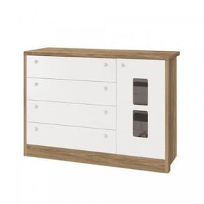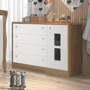 Cômoda Infantil Sapateira Joãozinho 1 Porta 4 Gavetas Móveis Reller Branco Fosco com Mezzo Fosco. Projetada na medida ideal para adaptar-se em qualquer ambiente, a Cômoda Joãozinho possui um tampo de 25 mm, puxadores em PVC e corrediças telescópicas que aumentam ainda mais a vida útil das gavetas; os detalhes da porta usinada é o charme dessa composição. Excelente para quem busca por um móvel moderno e bem proporcionado. Possui corrediças telescópicas. puxadores em PVC, sistema anti tombamento. Marca: Móveis Reller Ean: 7908506204126