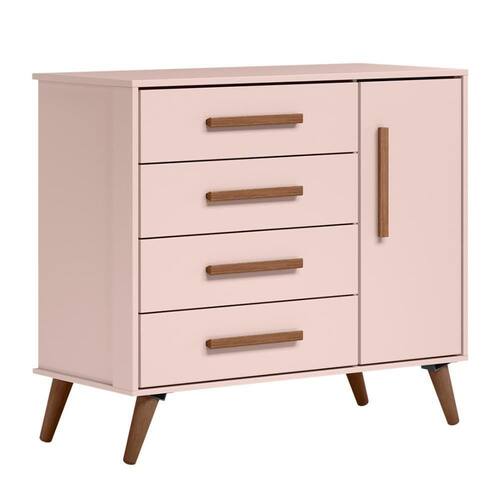 A Cômoda Sapateira Infantil 4 Gavetas Retrô Rosa da Qmovi, é a escolha perfeita para quem procura um móvel encantador e altamente funcional para o Quarto Infantil.