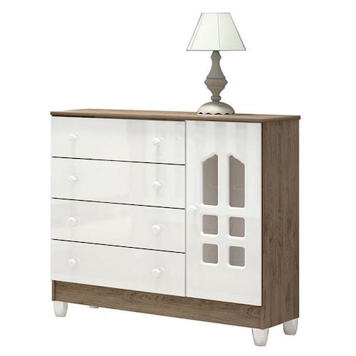 Cômoda Infantil Selena Branco Acetinado Amadeirado Carolina