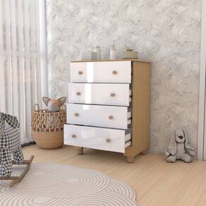 O(a) Cômoda Infantil Sueño 4 Gavetas 100% Mdf Branco Brilho/Amêndoa - Loja é produzido em 100% MDF na escala de brilho Brilhante e Semi-Brilho, e possui um grau de dificuldade de montagem: Médio.