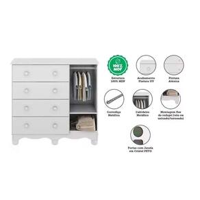 Tipo de Cabideiro - Aéreo Material das Portas - Portas em MDF Tipo de Dobradiças - Dobradiças Metálicas Quantidade de Portas - 1 Porta de Abrir Material das Gavetas - Gavetas em MDF Tipo de Corrediça - c/ Corrediças Telescópicas Quantidade de Gavetas - 4 Gavetas Tipo dos Pés - ABS/PVC Quantidade de Pés - 6 pés Material das Prateleiras - Prateleiras em MDF Quantidade de Prateleiras - 1 Prateleira