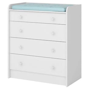 Cômoda Infantil Trocador Doce Sonho , que possui tudo o que você precisa para deixar as roupas e acessórios do bebê organizados com total conforto e praticidade estrutura reforçada confeccionada em MDP de qualidade com acabamento em pintura UV que proporciona maior durabilidade e resistência ao produto, design exclusivo para deixar o quarto do seu bebê mais bonito. Possui 4 gavetas com excelente profundidade, puxadores exclusivos em formato de estrela e espaço para trocador facilitando na hora de trocar o bebê.