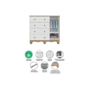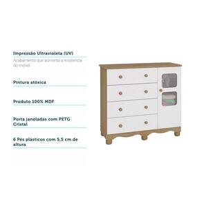 Cômoda Infantil Uli c/ 1 Porta Cristal e 4 Gavetas Branco/Amendoa - Peroba